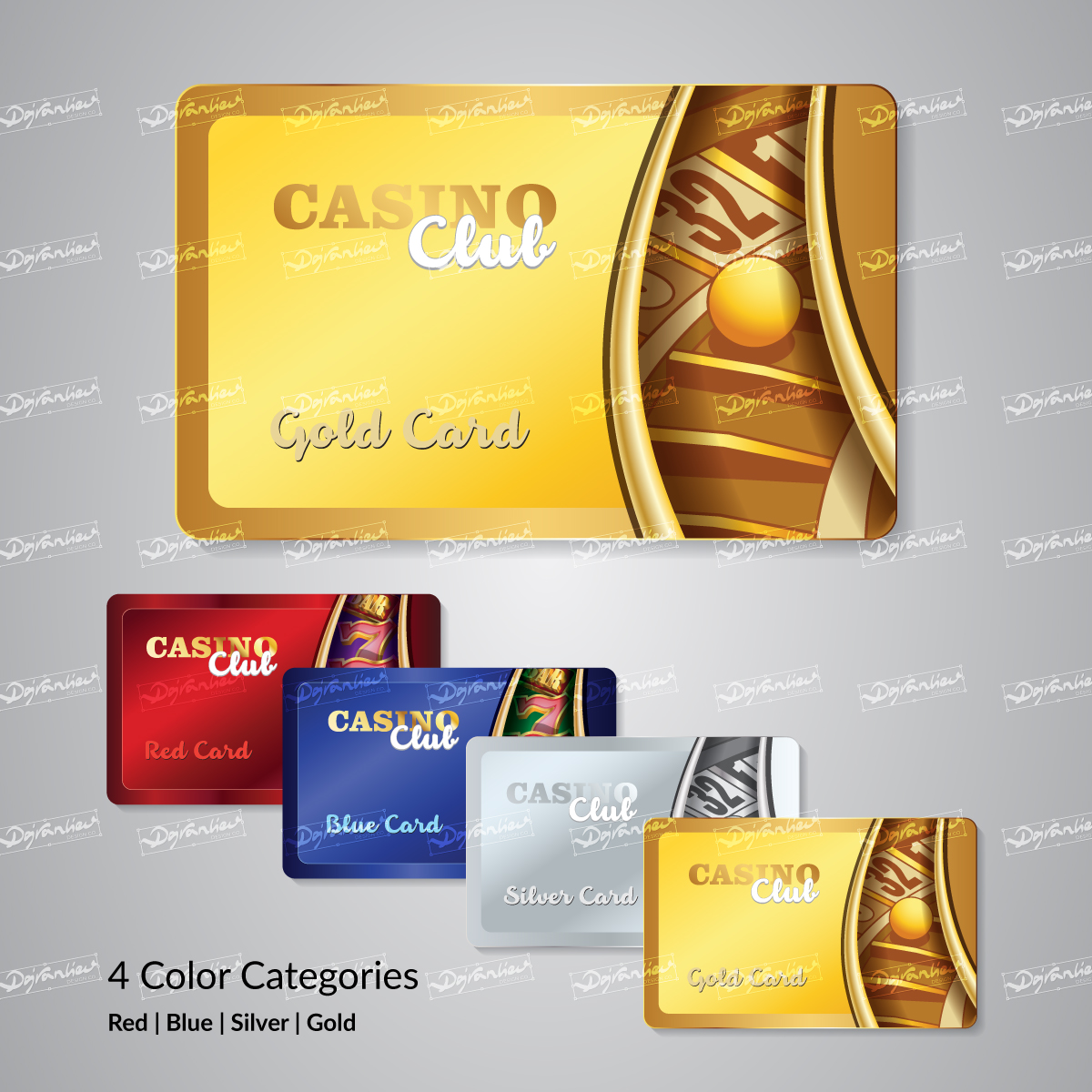 Discover our stunning Casino Club Players Membership Cards Template, featuring four color categories: red, blue, silver, and gold. The red and blue cards offer a thrilling slot machines theme, while the silver and gold cards embody the elegance of live gaming. Elevate your casino club experience with customizable vector artwork that enhances loyalty programs and rewards members. Unlock a world of excitement and VIP treatment with our Casino Club Players Membership Cards, designed to captivate and impress. Get yours today and elevate your casino club to new heights of sophistication and exclusivity.
