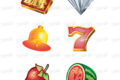 Experience the nostalgic charm of casino slot machines with our vector artwork featuring Casino Slot Machine Icons isolated on a...