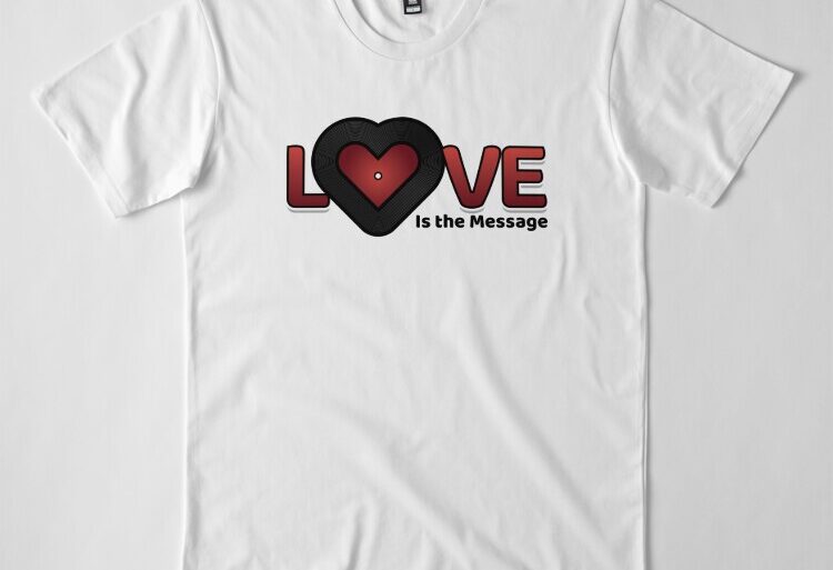 This beautiful artwork features the word “LOVE” in bold, stylish letters, with the letter “O” replaced by a vinyl record...
