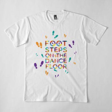 Step into the vibrant world of dance with this captivating artwork featuring colorful typography proclaiming “Footsteps On The Dance Floor.” Surrounded by a playful array of colorful footsteps, this piece is a visual celebration of movement and rhythm.