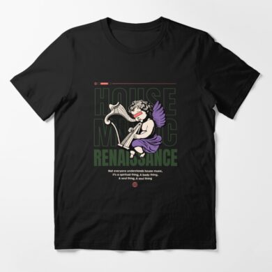 Elevate your senses with this enchanting artwork featuring an angel adorned with majestic purple wings, skillfully playing harp. In the celestial background, the words “House Music Renaissance” unfurl, weaving a narrative of divine melodies and a rebirth of sonic artistry. This piece is a visual symphony that beckons you to immerse yourself in the harmonious revival of house music.